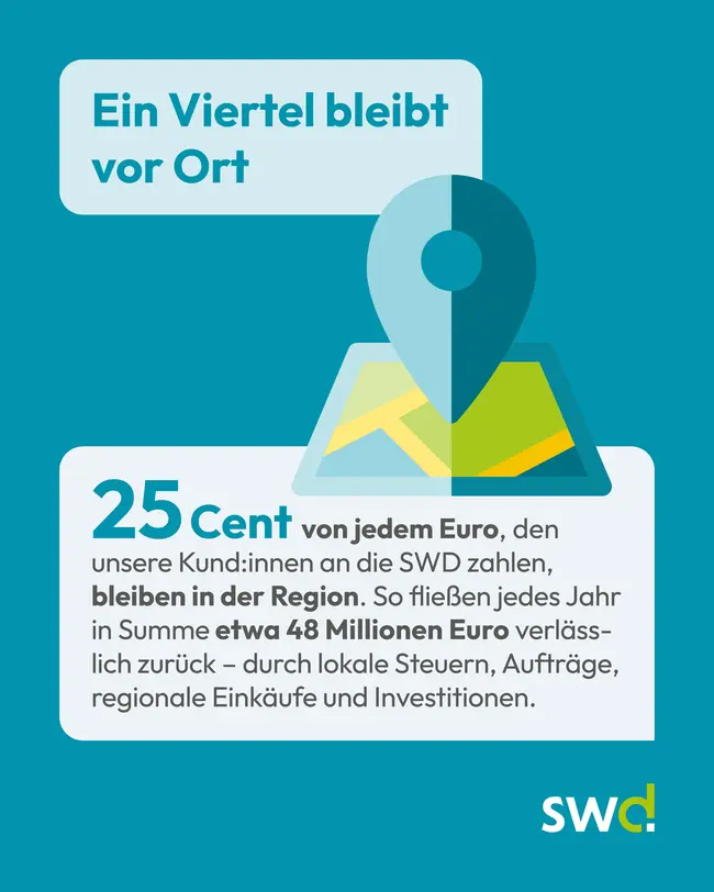 25 Cent von jedem Euro, den Kund:innen an die Stadtwerke Düren (SWD) zahlen, verbleiben direkt in Düren und der Region. Das ist das zentrale Ergebnis einer von Eckart & Partner (Ottobrunn) erhobenen Standortanalyse für das Jahr 2024. Die Untersuchung zeigt: Die SWD sind weit mehr als ein lokaler Versorger – sie sind ein stabiler wirtschaftlicher Pfeiler für die Stadt und ihr Umfeld.